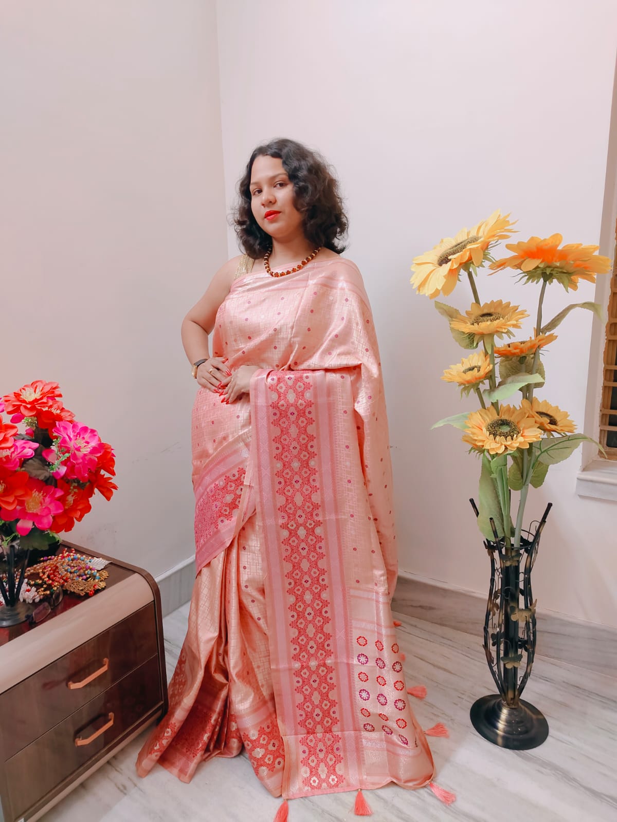satin pink benarasi