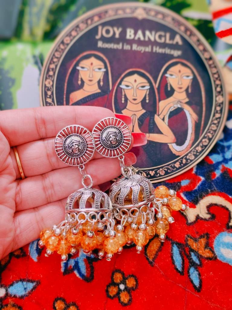 Elevate your ethnic elegance with this intricately designed Jhumka from Joy Bangla. Inspired by Bengalโs rich cultural heritage, each piece is a celebration of timeless artistry and grace.